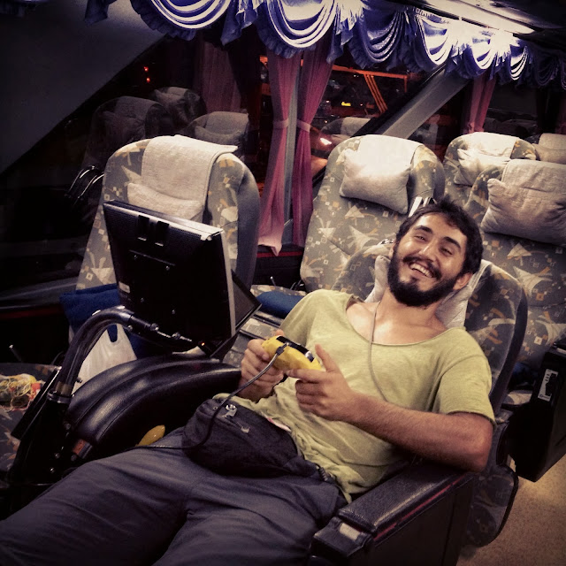 Neyse akşam Bts ile Mooçit durağına gidip otobüs istasyonuna doğru yürüdük çantalarla, yarım saatten fazla sürünce yorulduk haliyle karşımıza çıkan ilk otobüs firmasına girip aldık biletleri. Birazcık pahalıya geldi o yüzden, daha uygun fiyatlar varmış, dönüşte gördük. Tabi fiyata göre muamele, giderken çok rahat ettik ama dönüşte yolculuk boyunca klimadan su damladı, hatta şakır şakır aktı üstüme!